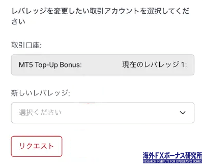 そこで新しいレバレッジを設定して「リクエスト」を押すと、レバレッジの変更が適用されます。
